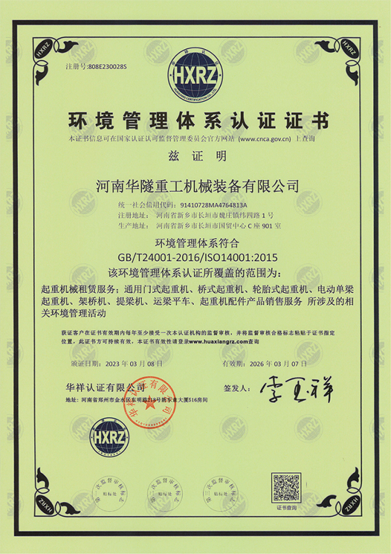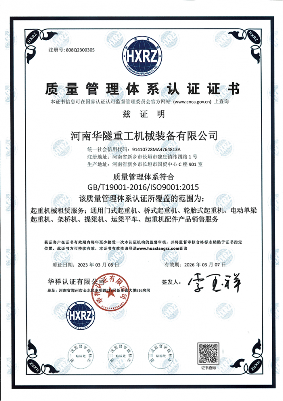 河南華隧重工機械裝備有限公司主要從事通用門式起重機、橋式起重機、電動單梁起重機,輪胎式起重機、架橋機、提梁機、遠梁平車、鋼絲繩電動萌蘆、卷揚機、起重配件制造、銷售:起重機械租賃、安裝和維修,起重設備園收,機械設備維修,鋼結構工程承包,橋梁工程及技術咨淘服務,銷售五金制品、機電設備:建設工程監(jiān)理,建設工程設計,各類工程建設活動,建筑勞務分包,建筑物折除作業,施工作業,工程管理服務,土石方工程施工,裝如發(fā)運。  公司已通過IS0國際質量、環(huán)境、健康與安全三合一標準認證,特種設備制造許可證和特種設備安裝改造維修許可證。擁有完熟的質量管理體系。嚴格的管理制度,強大的生產能力和先進的檢測手段,在保證產品質量的同時,也具備了極強的市場競爭力。  公司堅持科技創(chuàng)新為理念,產品質量為核心,注重信譽,建立了減信可靠、快捷、思速。便利周到的售后服務網絡。  我們擁有的技術專家和技術服務隊伍為客戶提供充善的售前技術支持和全天候的售后服務體系,讓您無后顧之憂,享受一站式的超值服務。  “華隧重工,伴您成功“是華隧重工永遠的宗指,真被的希望與各界朋友攜手并進。共創(chuàng)輝準!